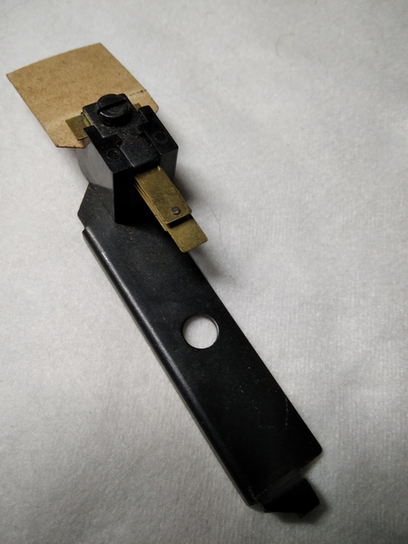 Umschaltkontakt für MÄRKLIN-Trafo 279 / 280 zur Betätigung der Überspannung für die Fahrtrichtungsänderung der Lokomotiven. Neuwertiges Original-Ersatzteil aus dem Jahr 1952 ( ET-# 279 u6a)